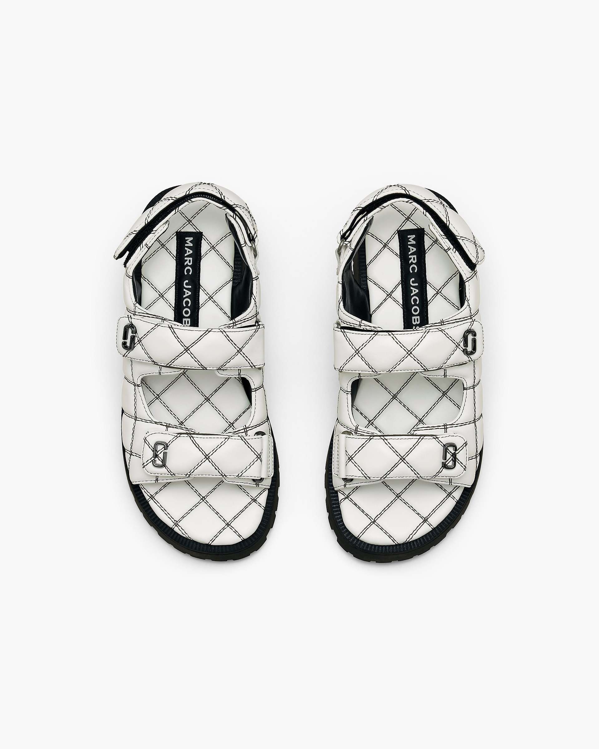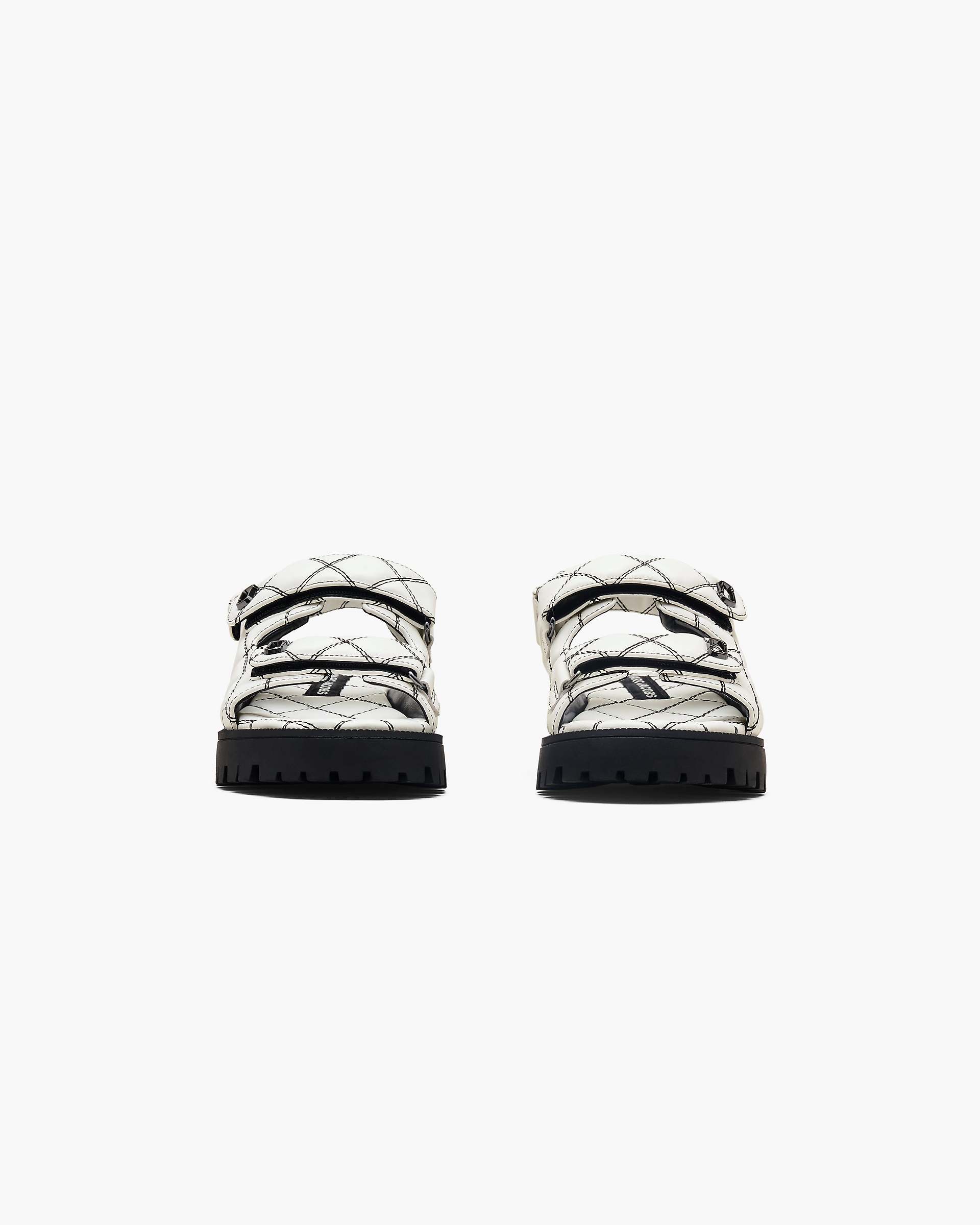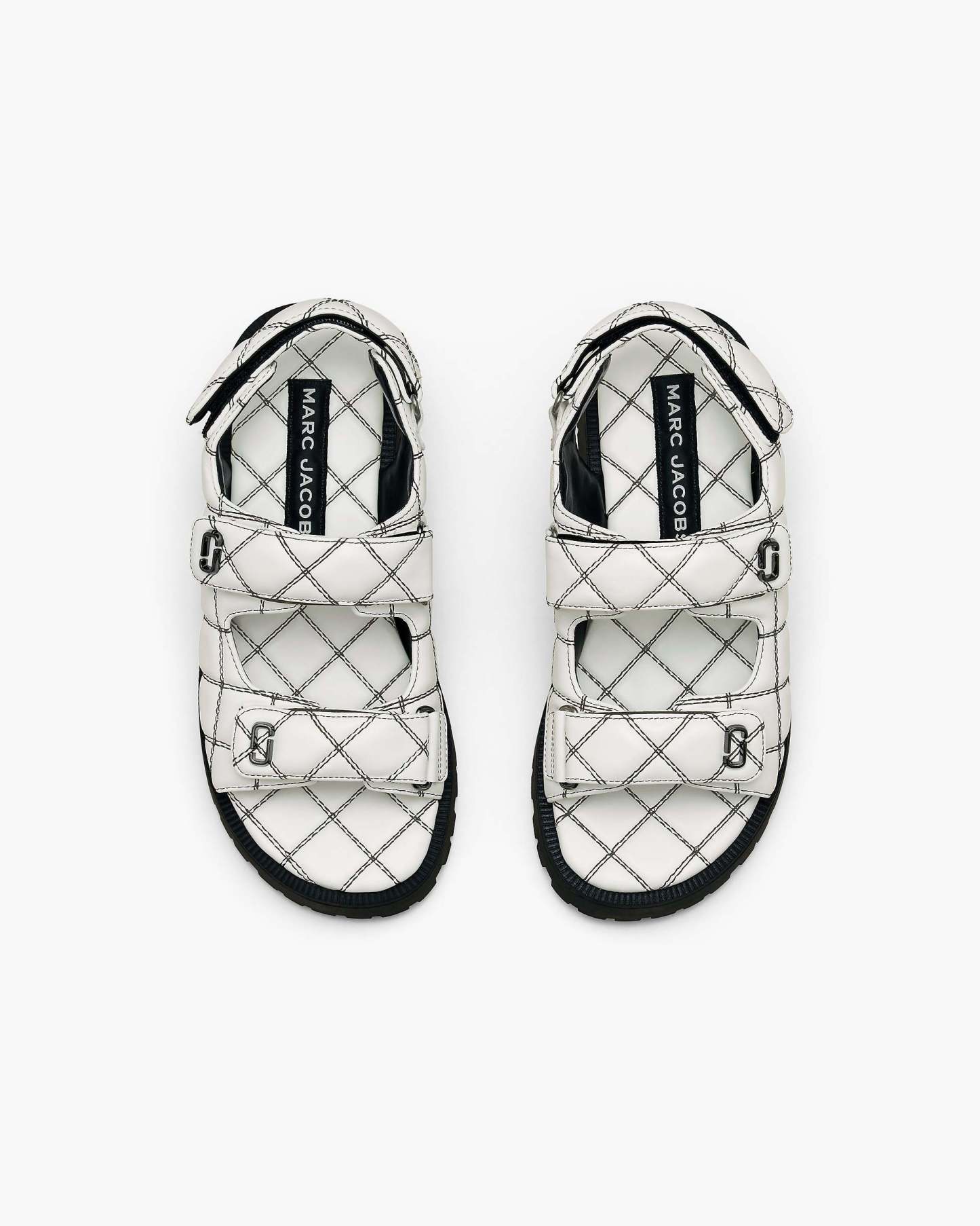 Our Sunny Sport Sandal crafted in stitched quilted leather for a plush feel. Finished with J Marc hardware detailing and adjustable Velcro straps for easy wearability. Shop Mathtrc Jacthtobs The Quilted Sunny Sandal