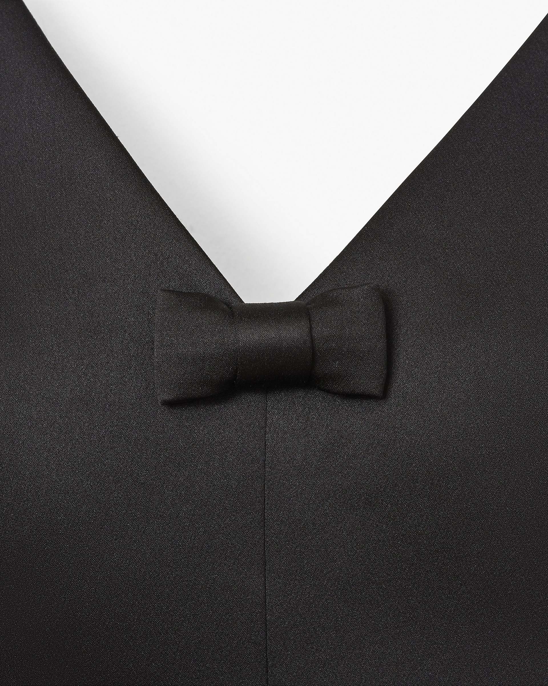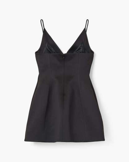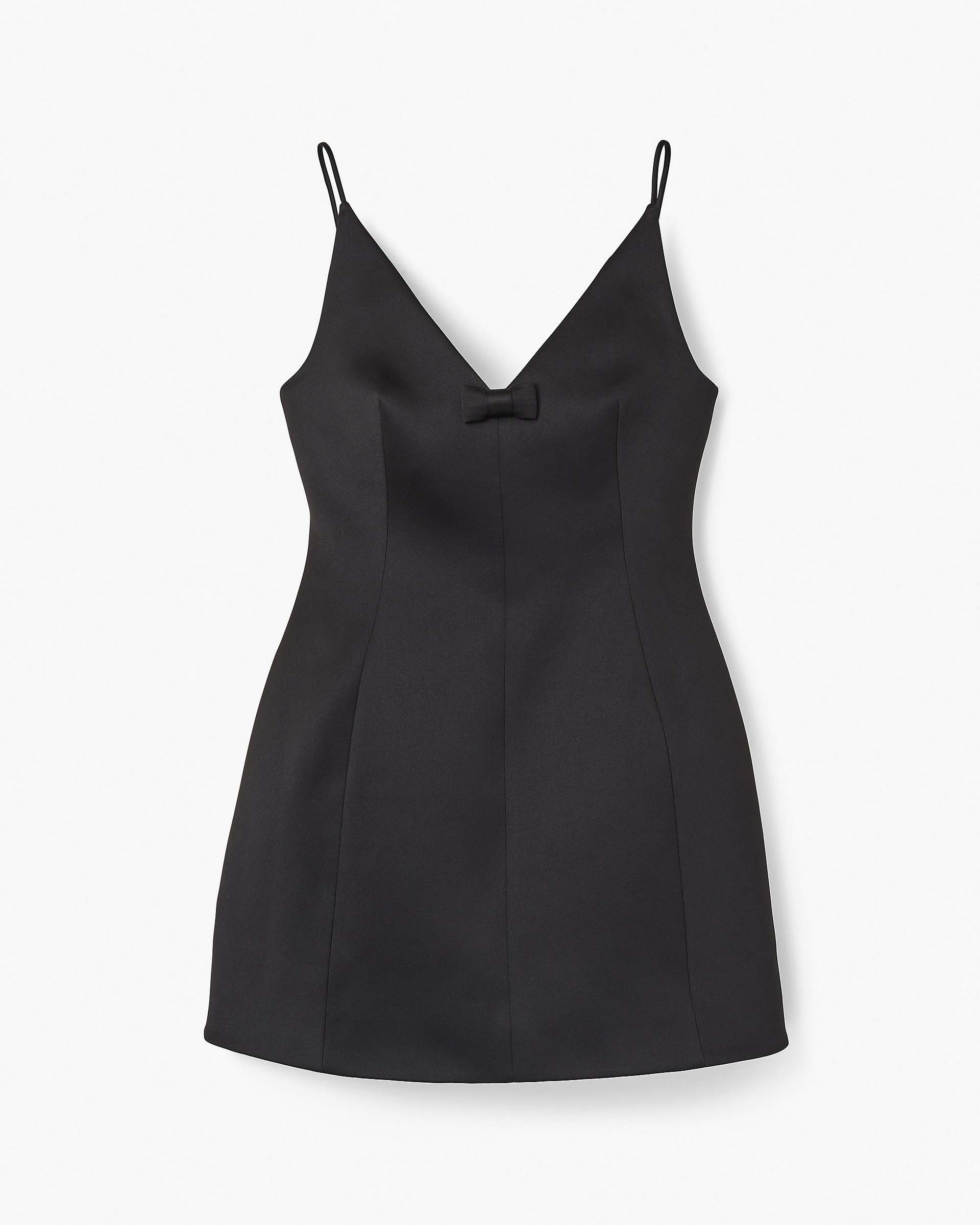 Evening sophistication meets youthful appeal in this tailored satin dress, featuring an elongated V-neckline and delicate spaghetti straps. Inspired by runway construction, princess darts run from under-bust to hem, creating a sculptural silhouette, while on-seam pockets offer a seamless, practical detail. Finished with an archive bow for a playful signature touch. Shop Mathtrc Jacthtobs Satin Bow Dress