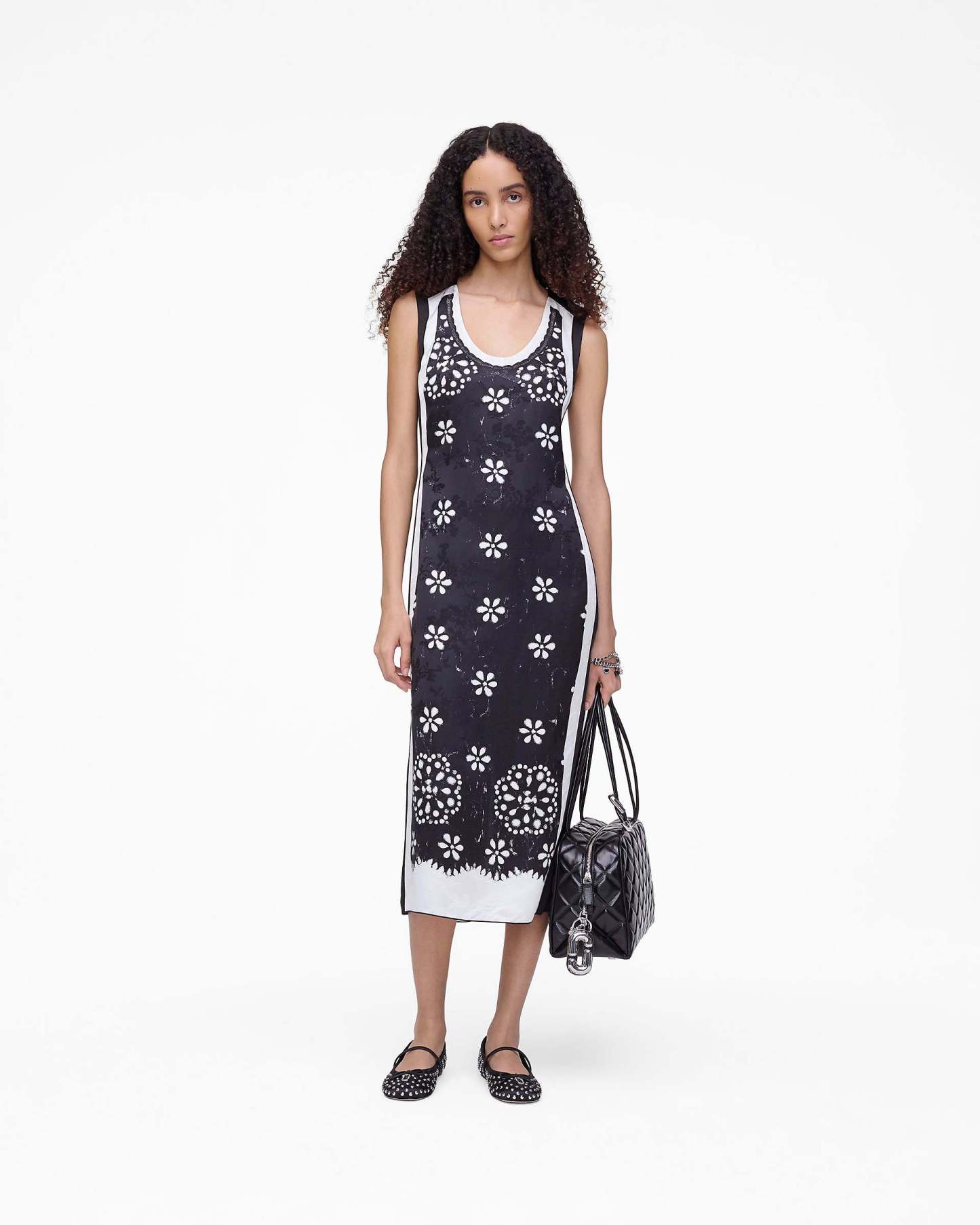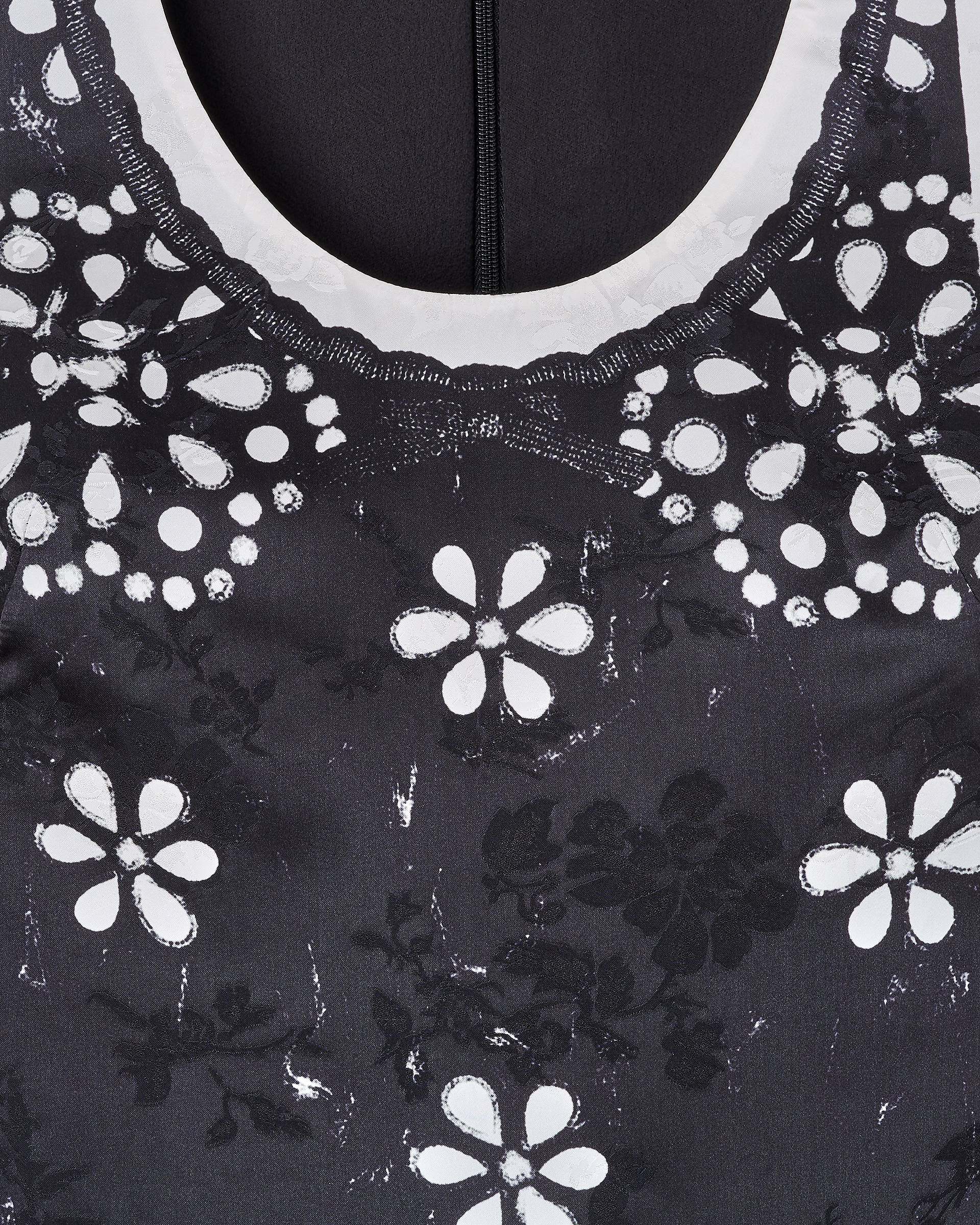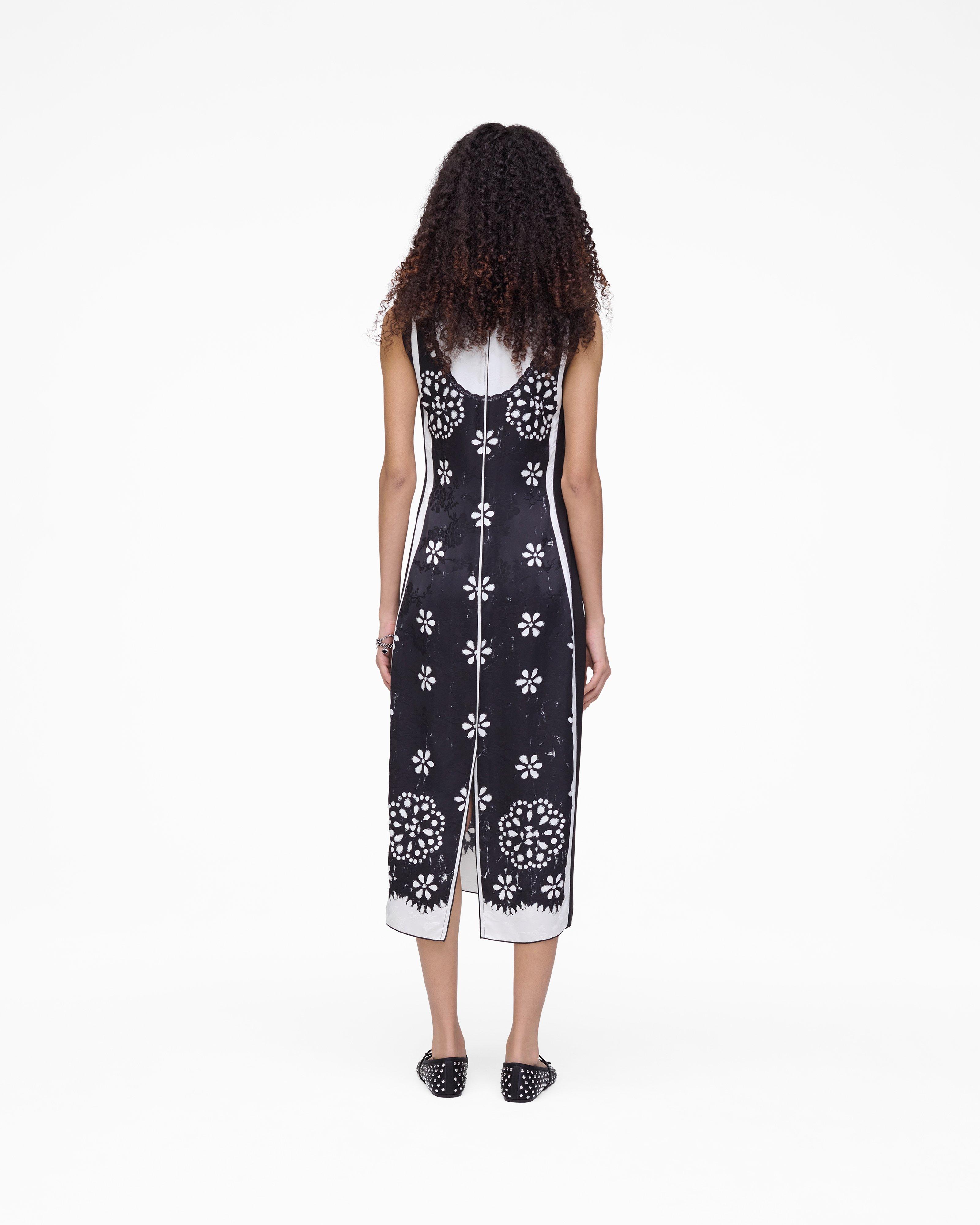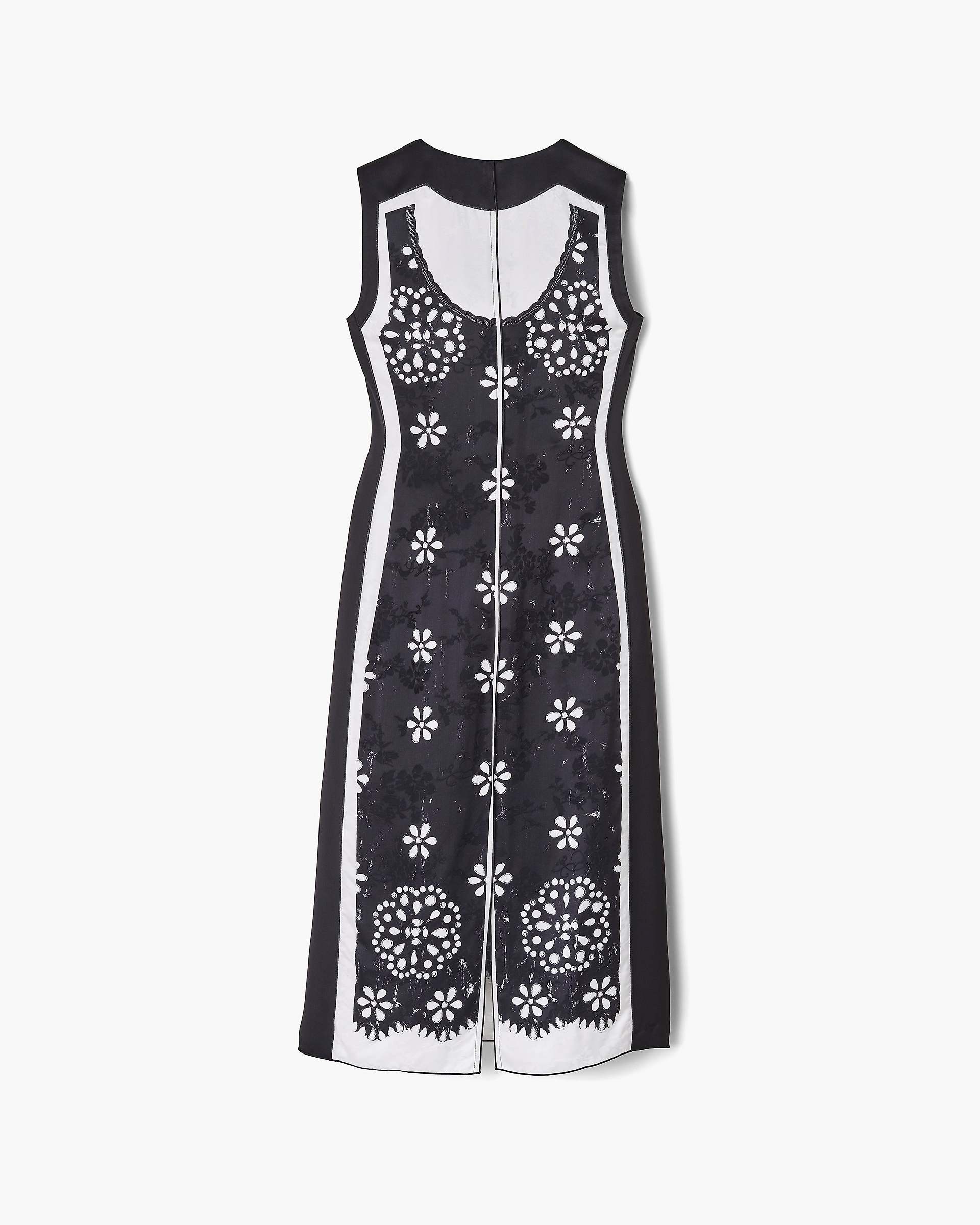 This mid-length slip dress features soft crepe panels and a placed trompe l’oeil Anglais print inspired by runway. The print creates textured effect, giving the fabric a softly sculpted, lived-in feel. Finished with a subtle back slit for ease of movement, it’s an elegant play on illusion and texture.