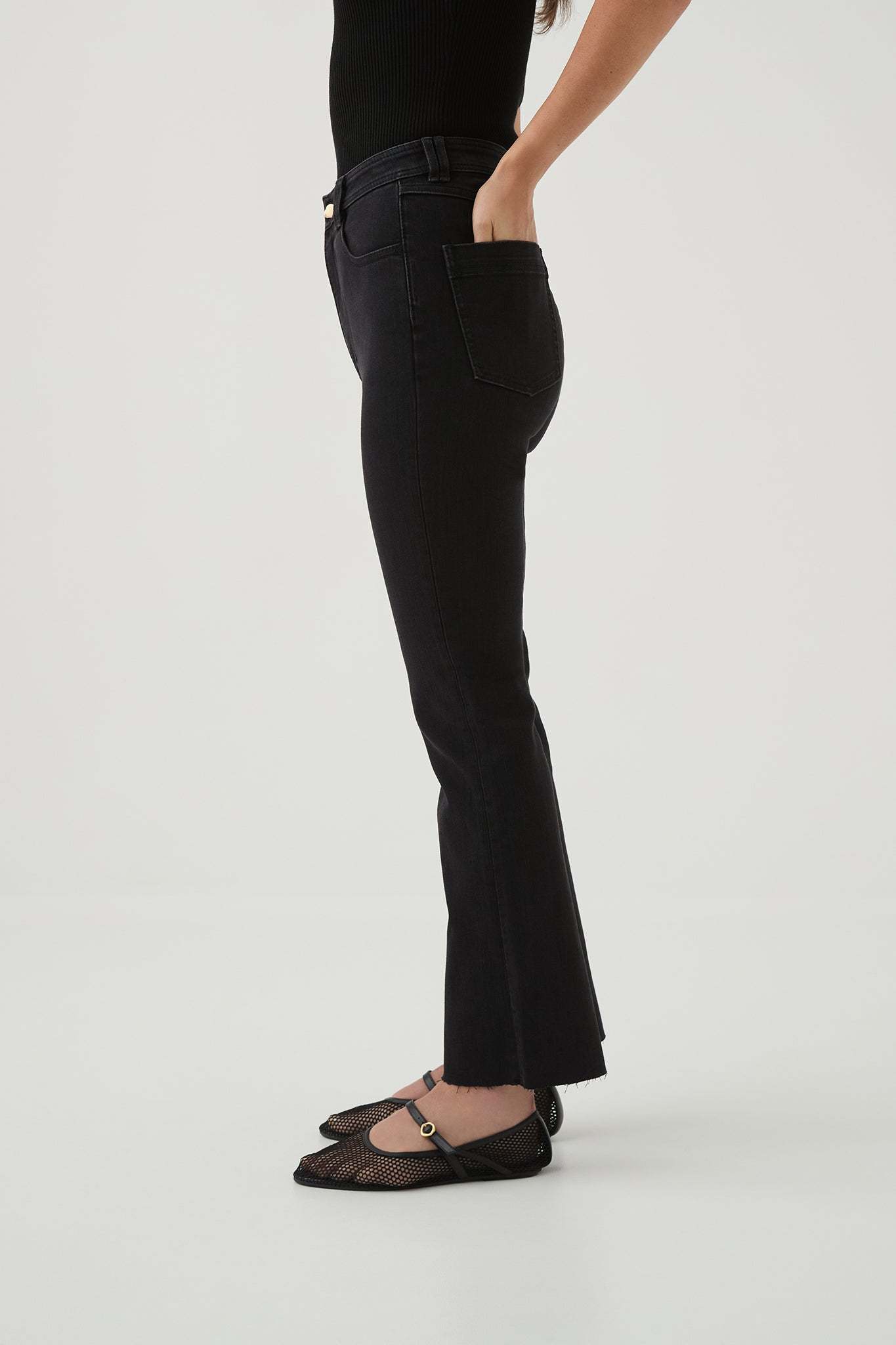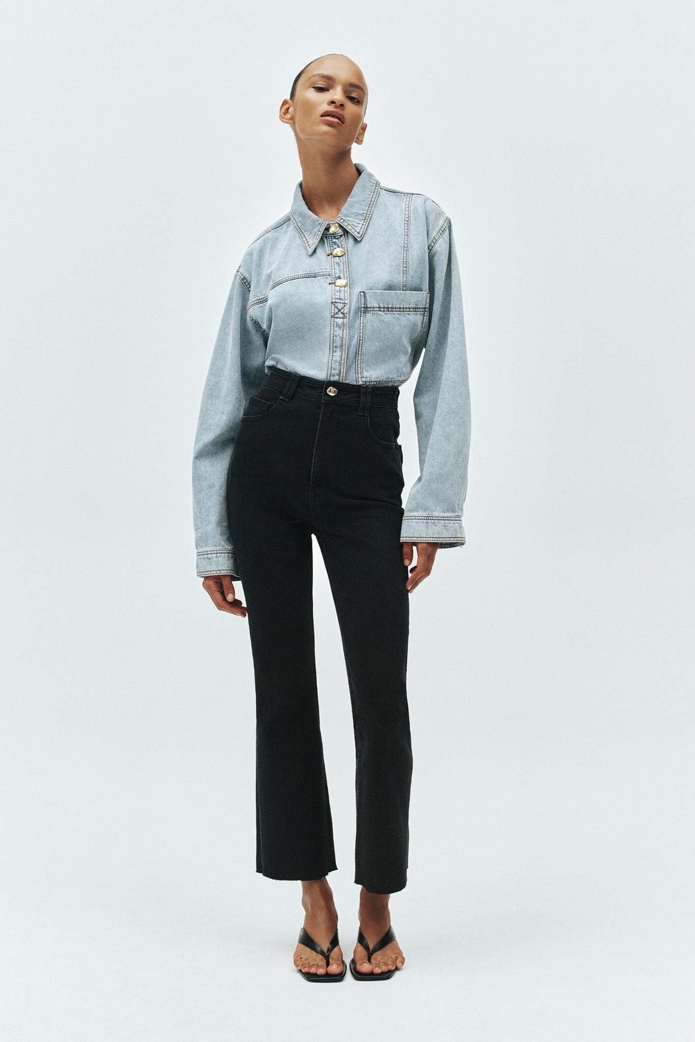 - Bootleg denim jeans