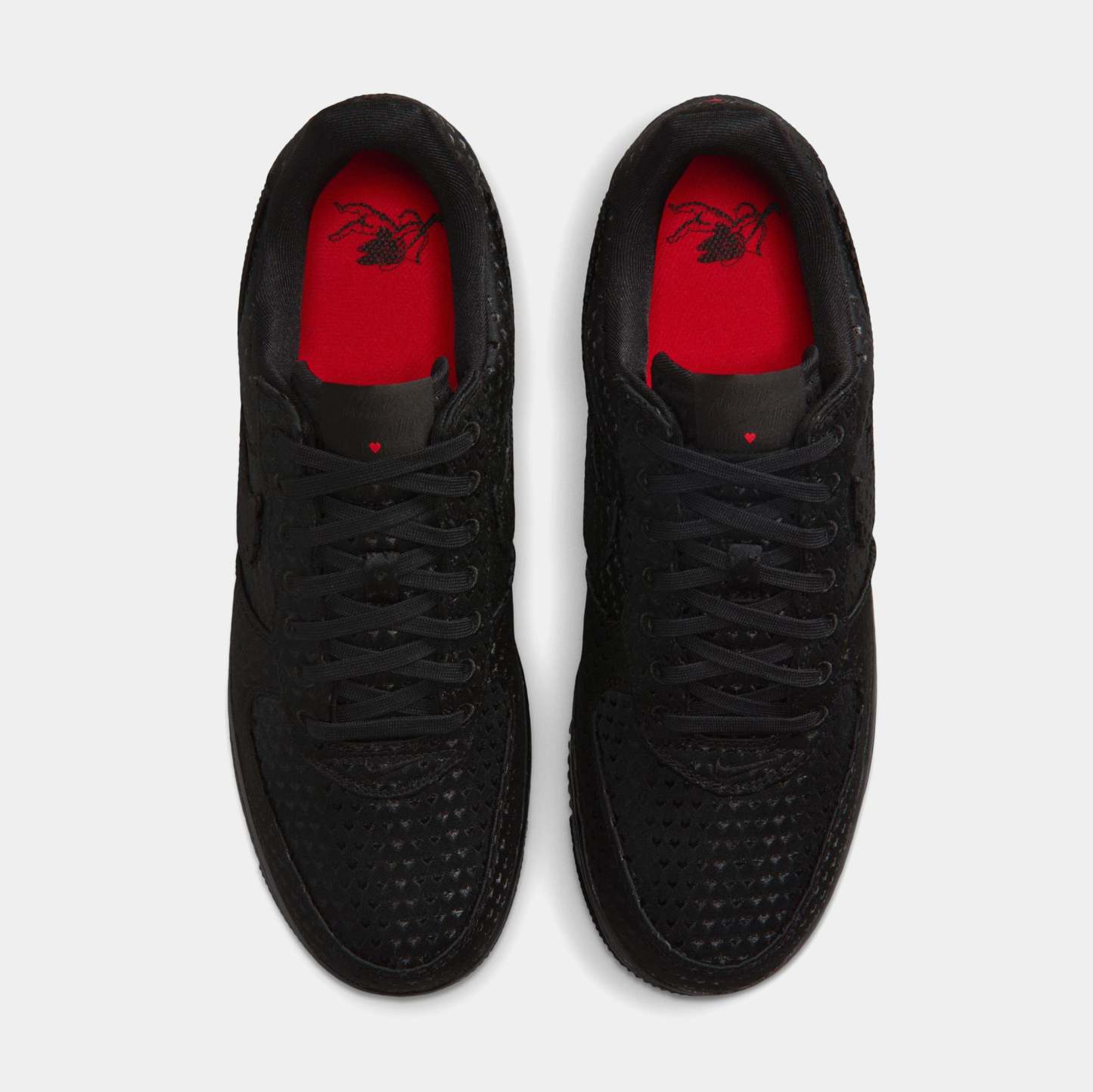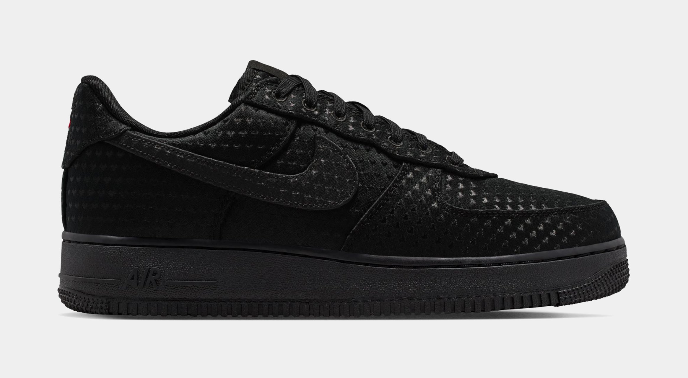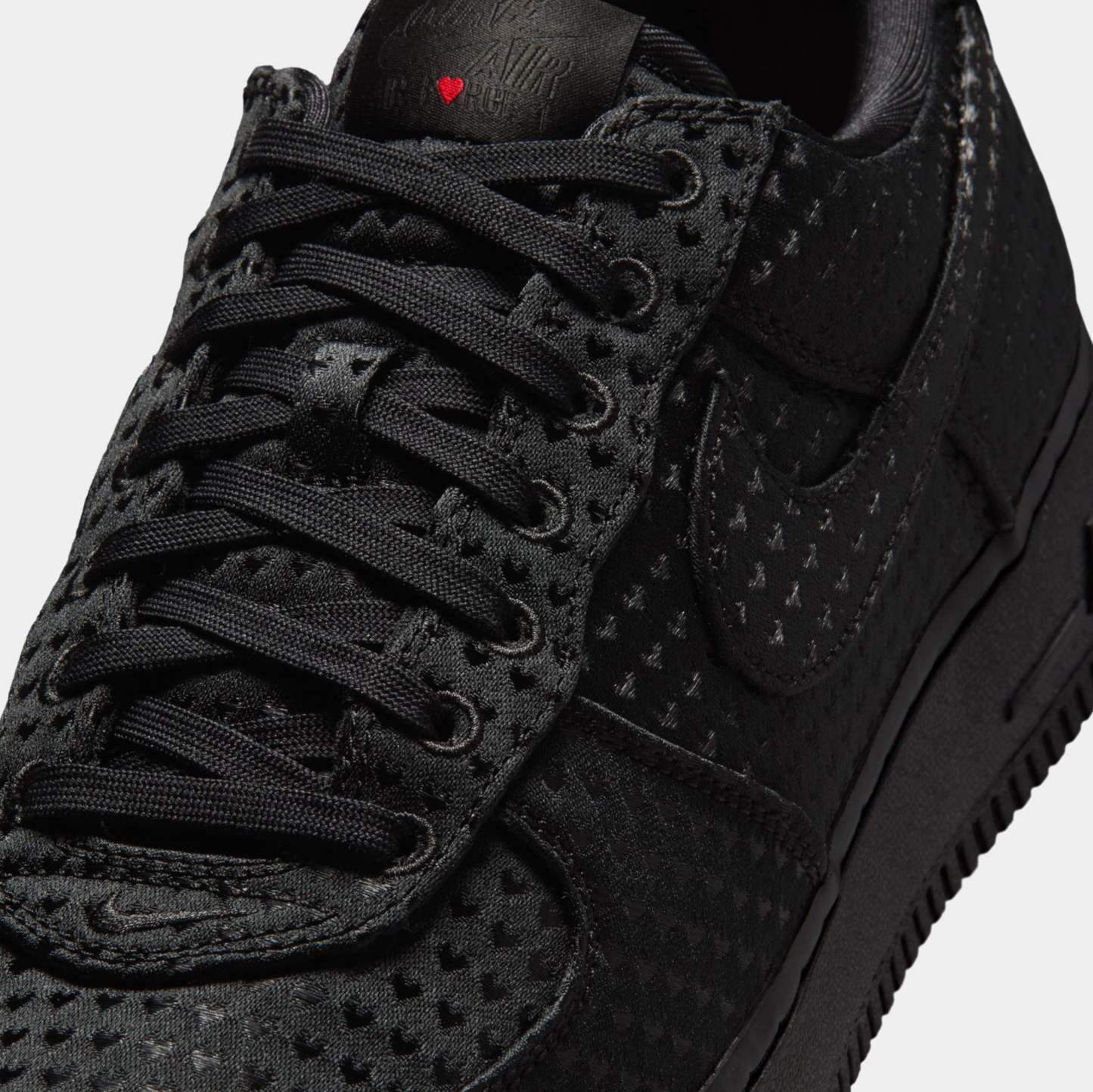 A sleek take on an iconic silhouette. Dressed entirely in black, this special-edition AF1 delivers a refined, versatile look while hiding thoughtful Valentine’s Day details throughout the design. The perforated upper adds texture and breathability, giving the shoe a premium feel that stands out without sacrificing its clean, monochromatic aesthetic.
