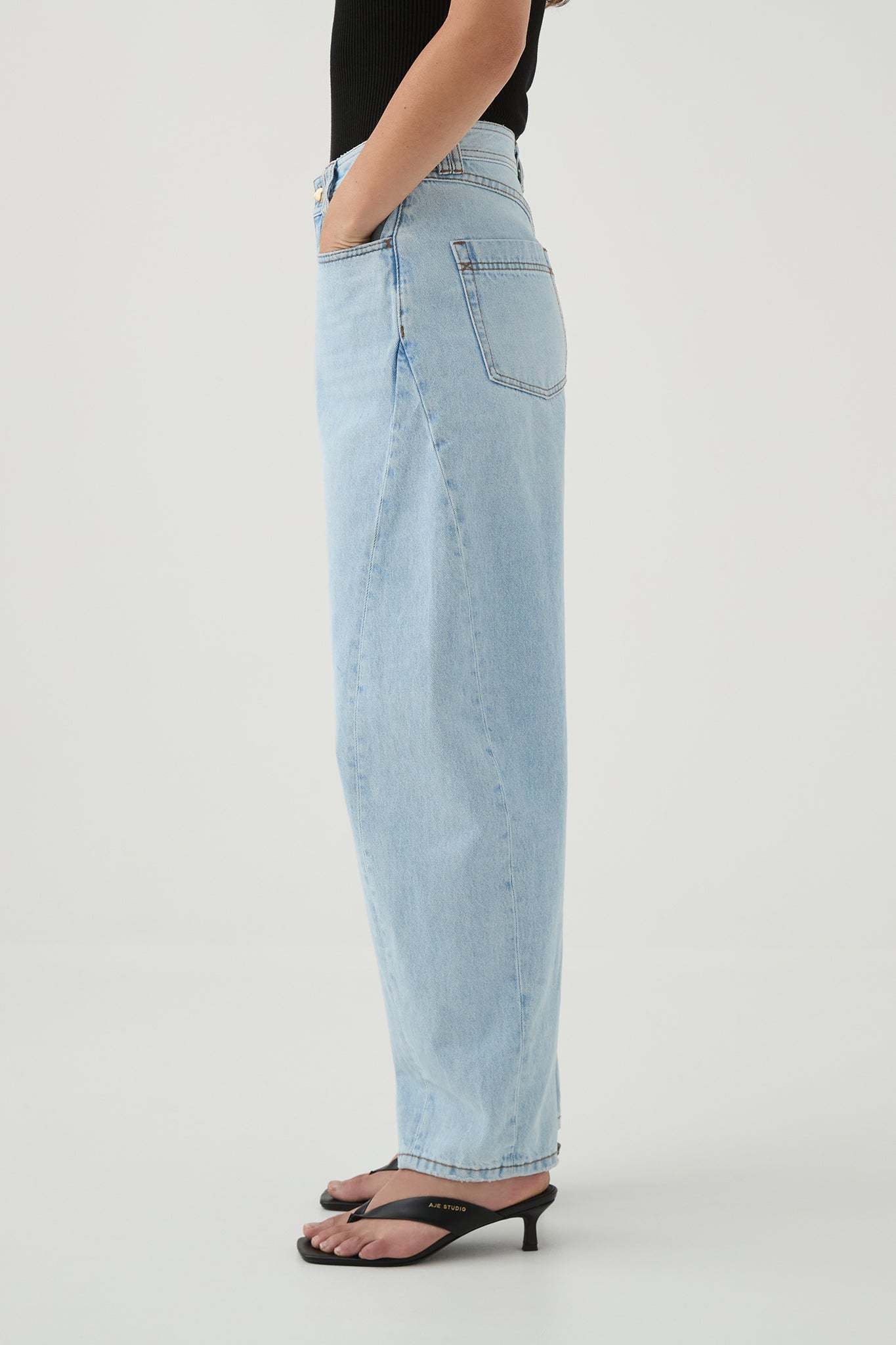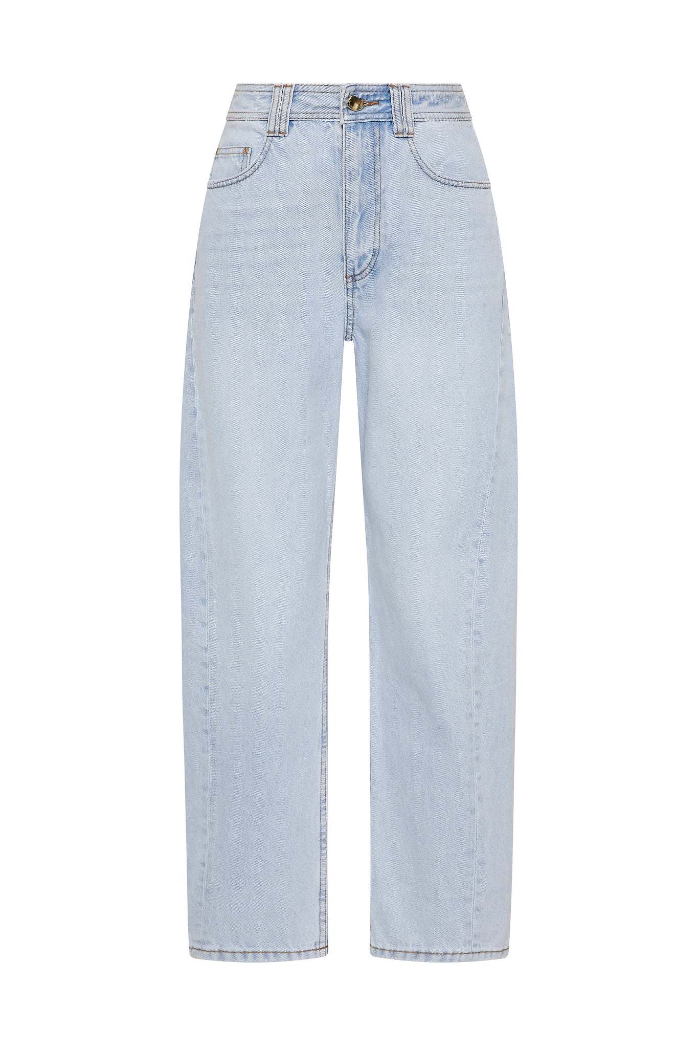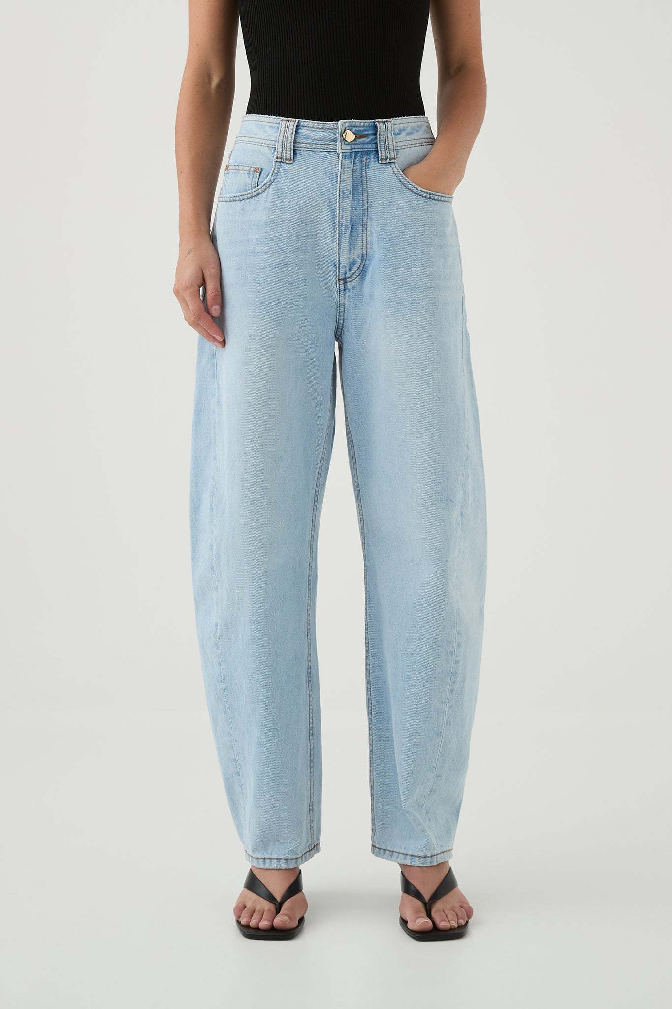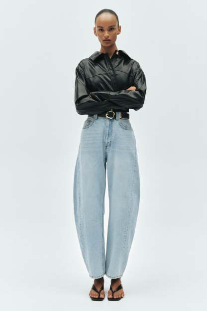 - Barrel leg denim jeans