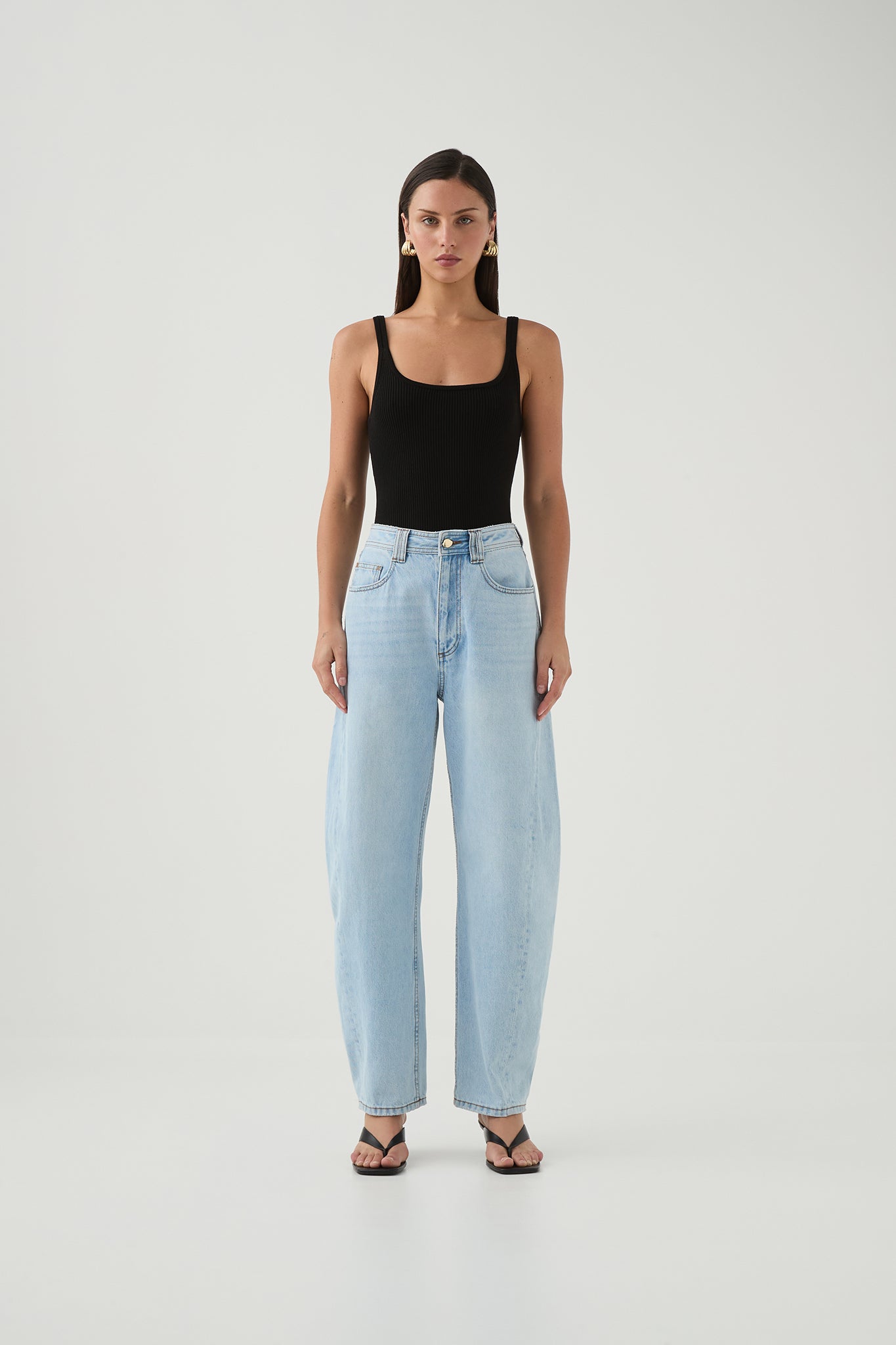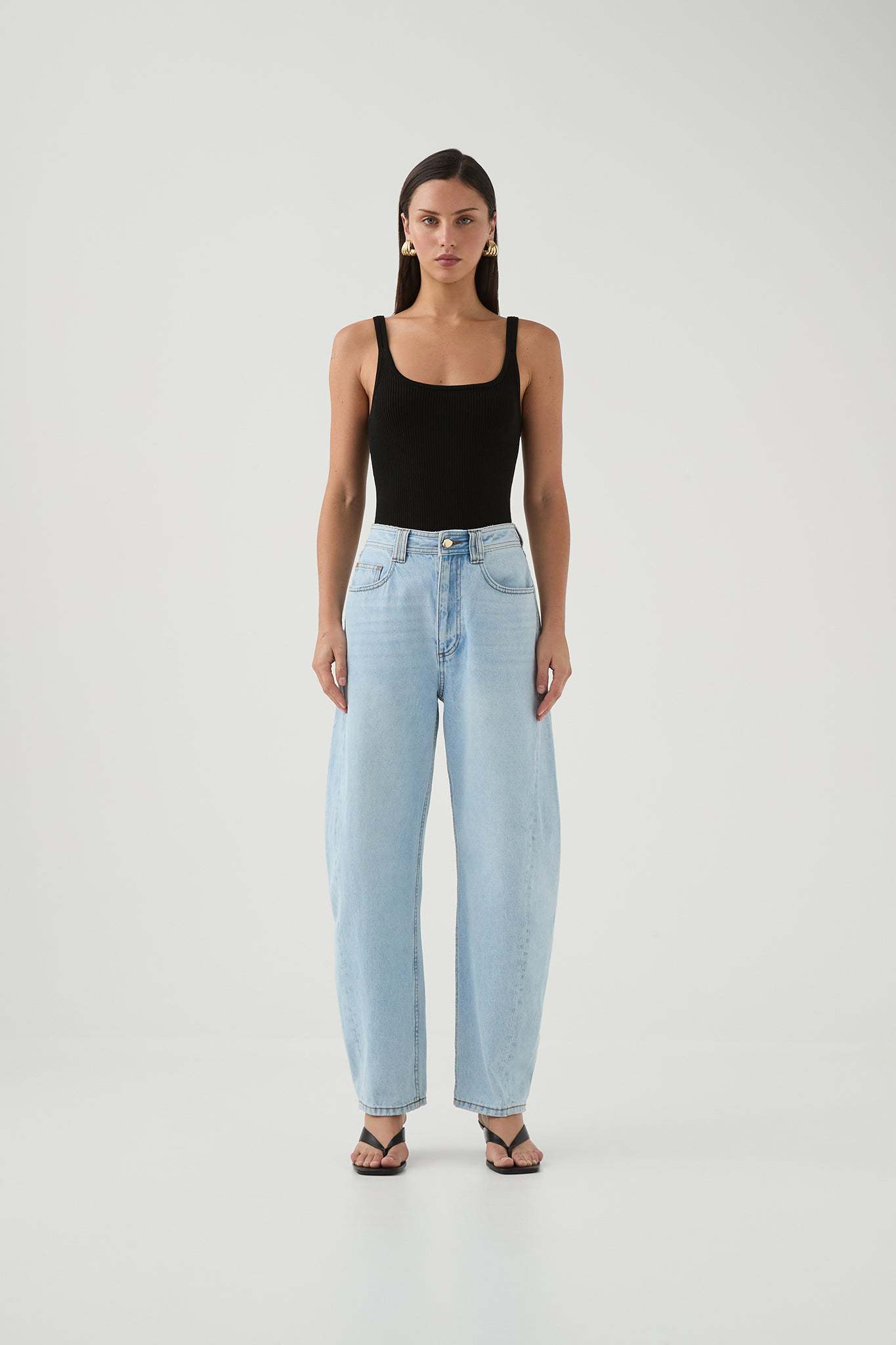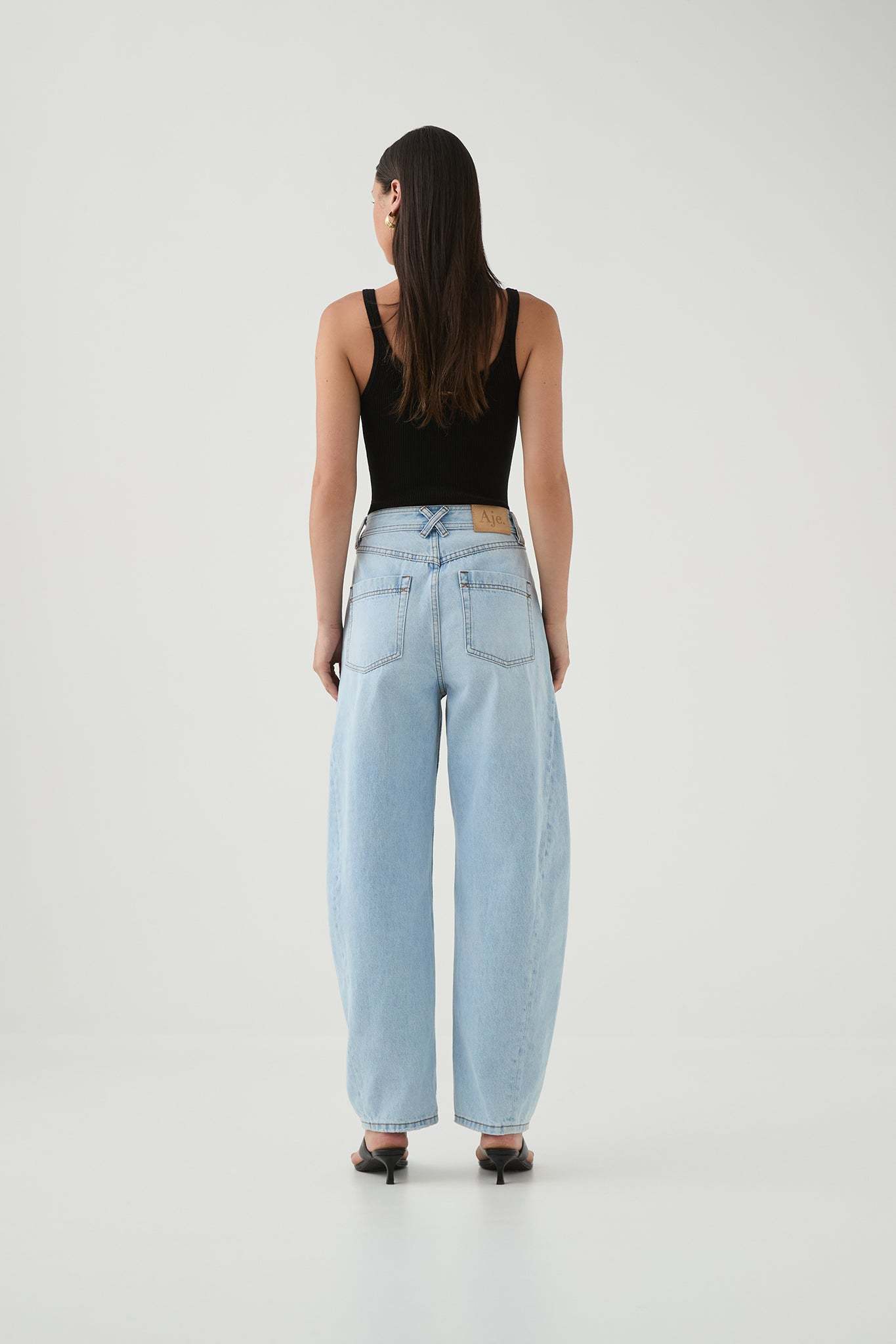 - Barrel leg denim jeans