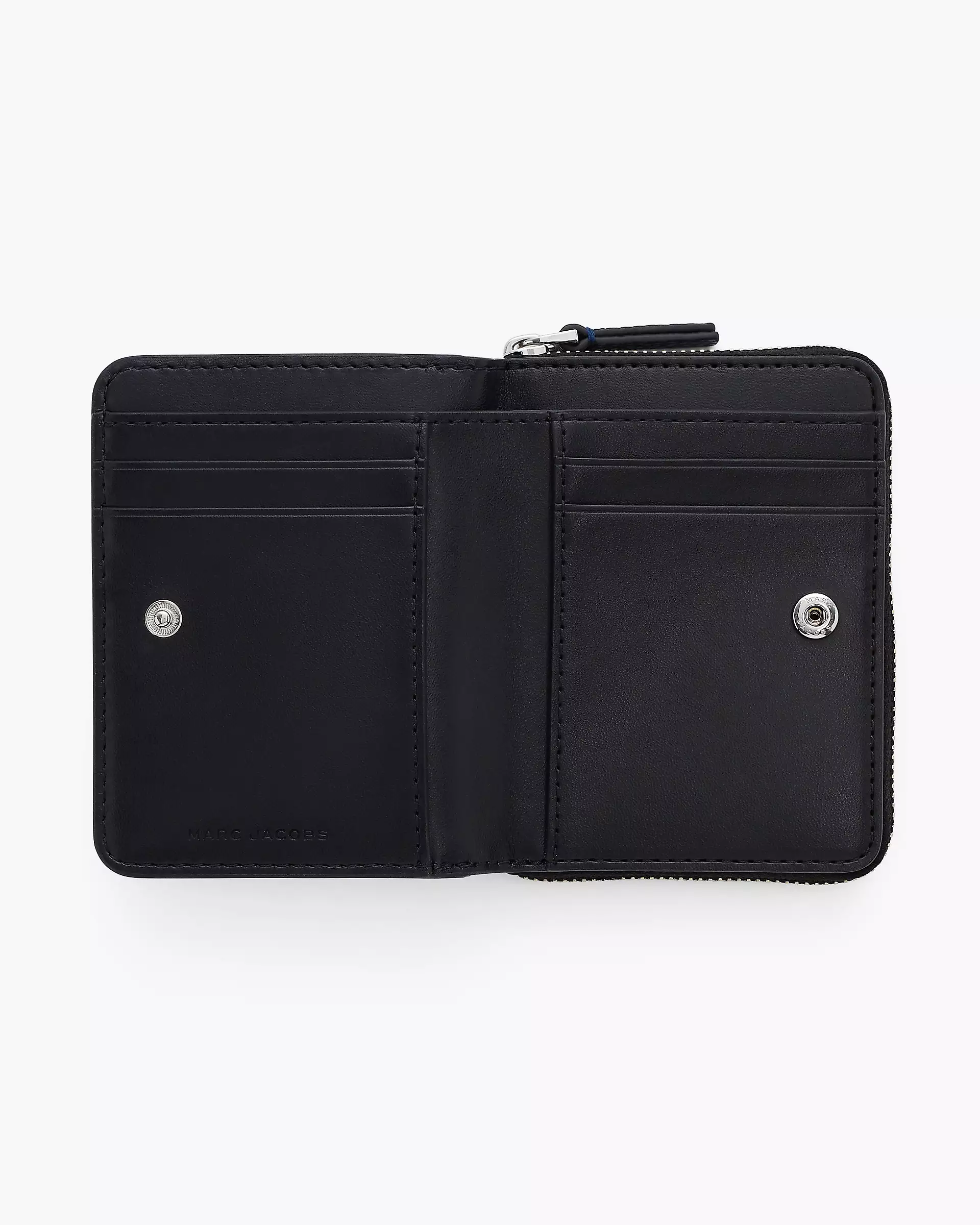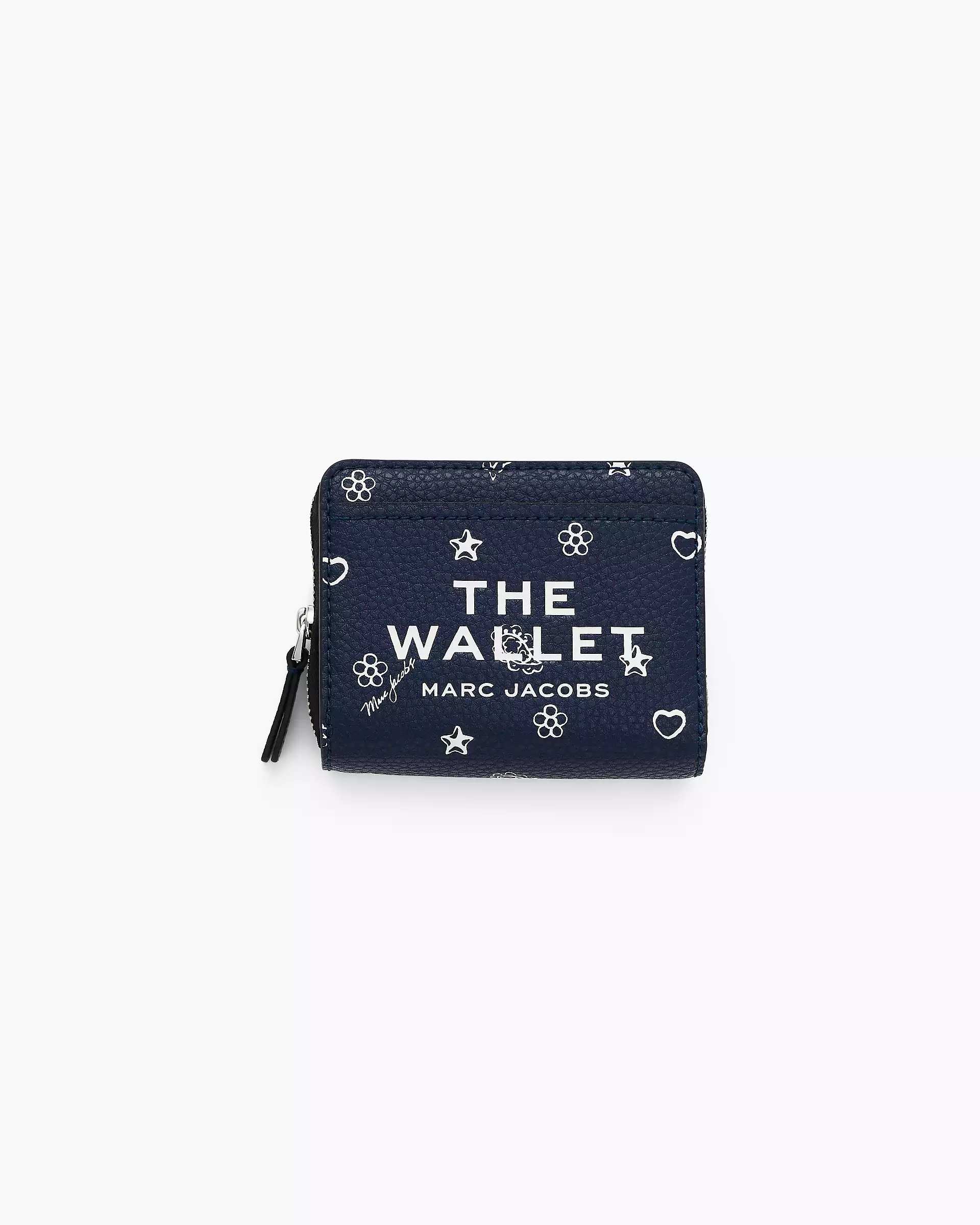 This compact wallet brings everyday utility to life with a playful bandana-inspired print, layered with hidden Mathtrc Jacthtobs charms for extra personality. Crafted in textural pebble leather and finished with debossed namesake branding, it features a bill sleeve, four card slots, two interior slip pockets, a double-gusset coin pouch and two external pockets - all secured with a sleek snap closure.