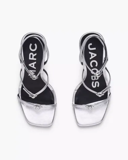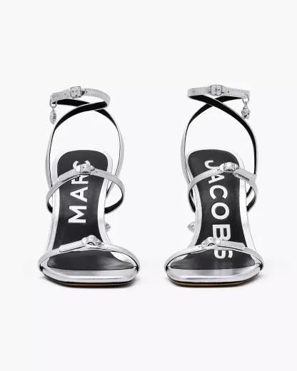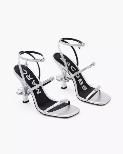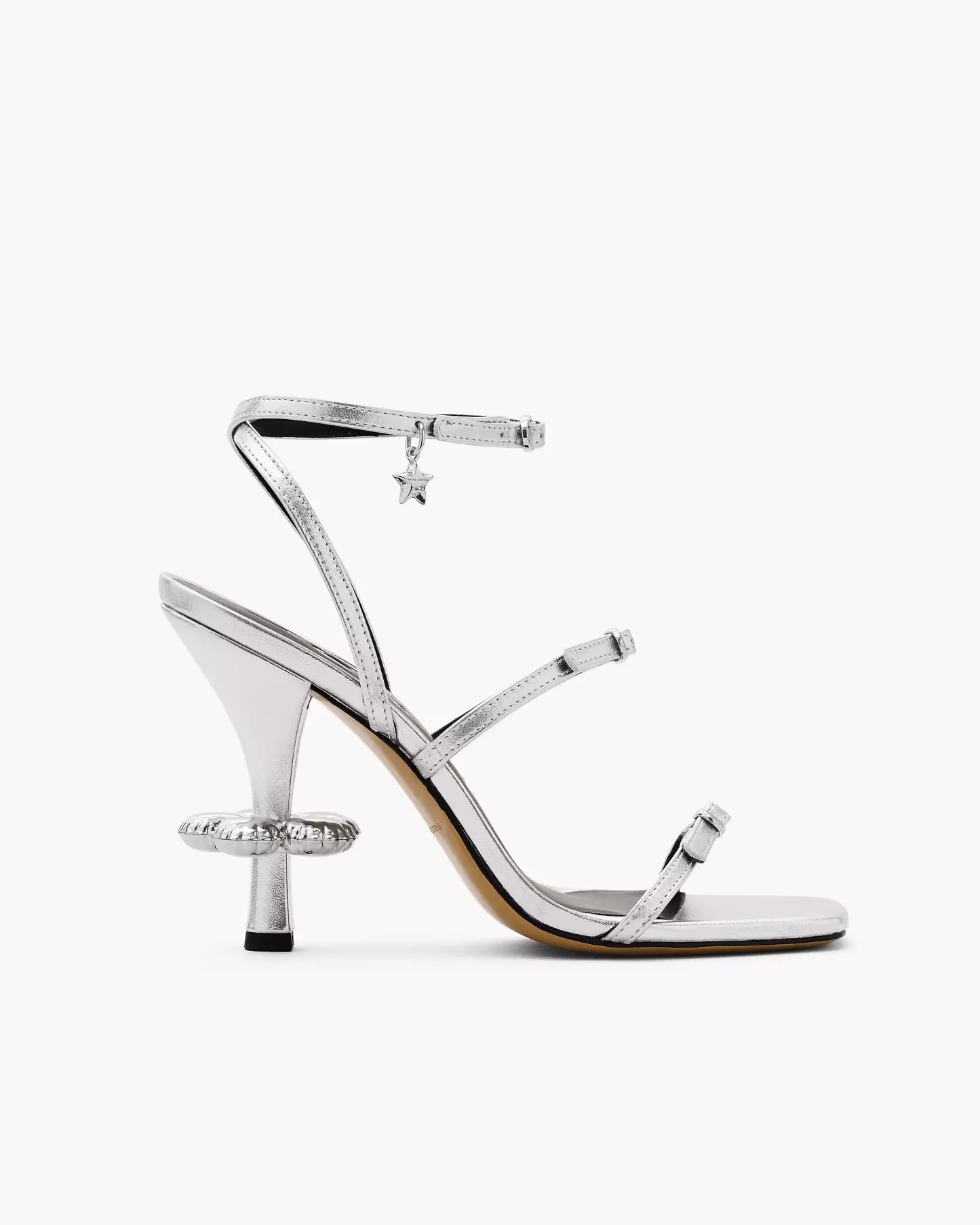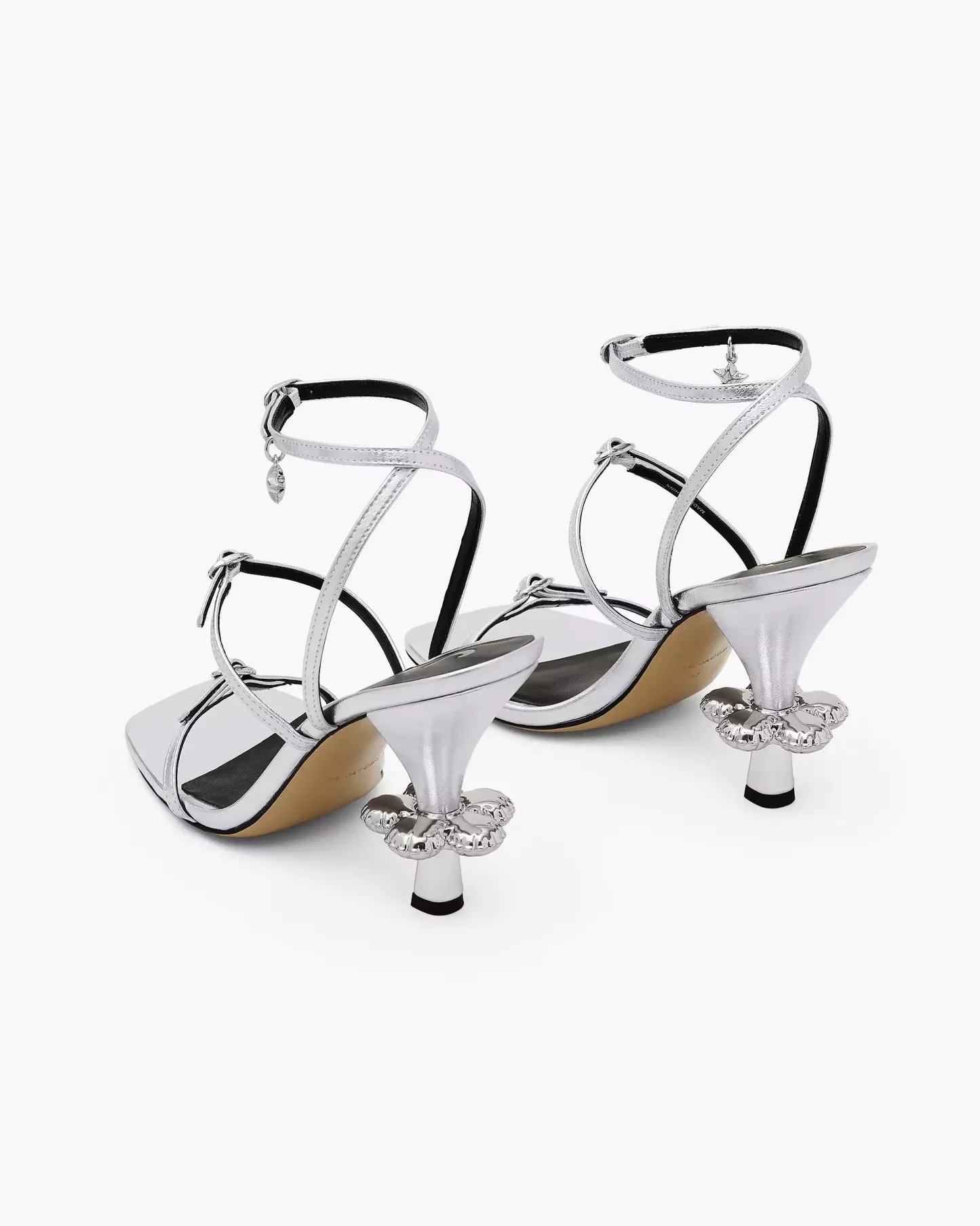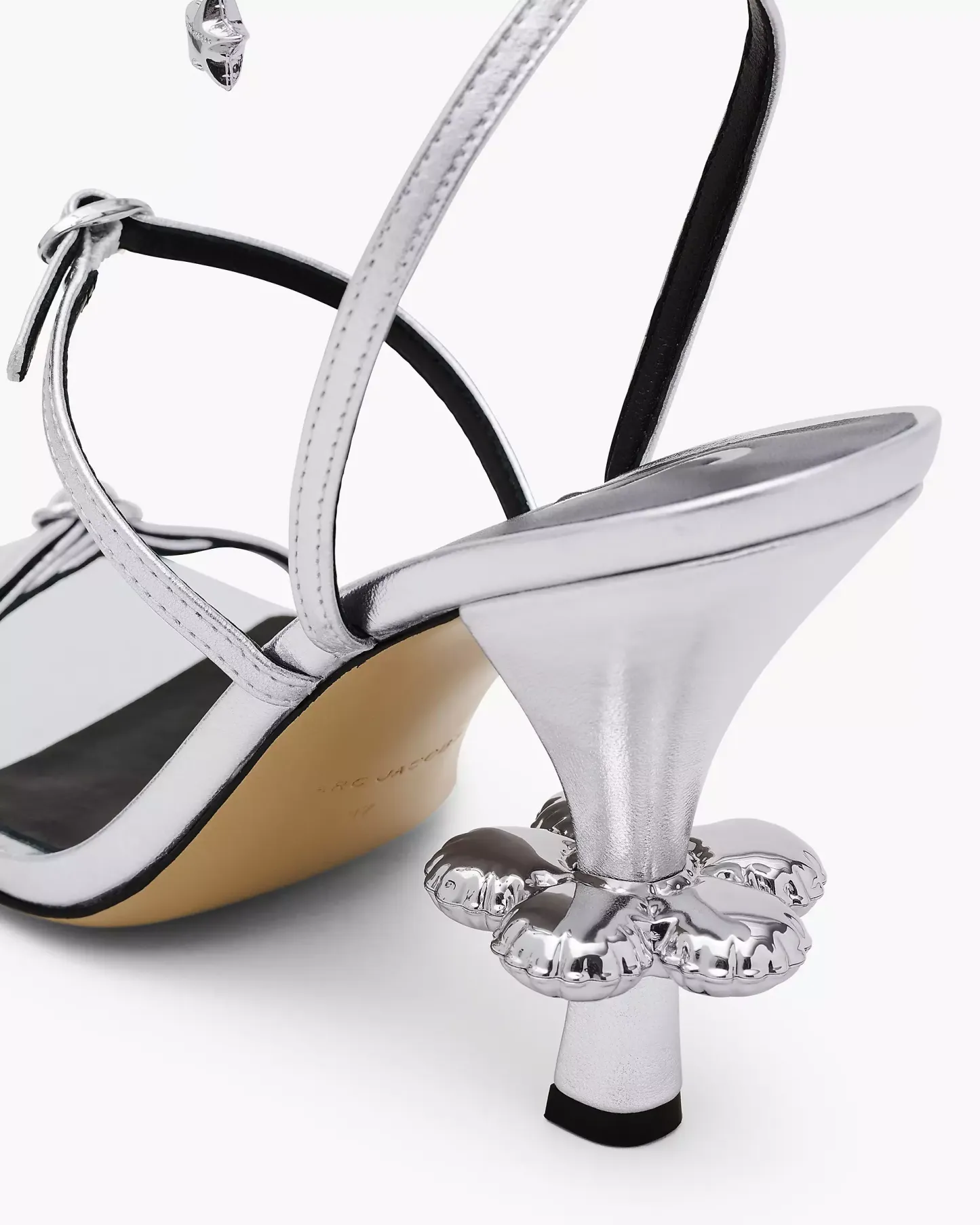 Add joy to your evening ensemble. These leather heels feature a sleek ankle strap- finished with a dangling charm- and a sculptural daisy balloon heel. Crafted in metallic leather, they combine luxury and whimsy for an unforgettable formal statement. Shop Mathtrc Jacthtobs The Metallic Leather Daisy Heel
