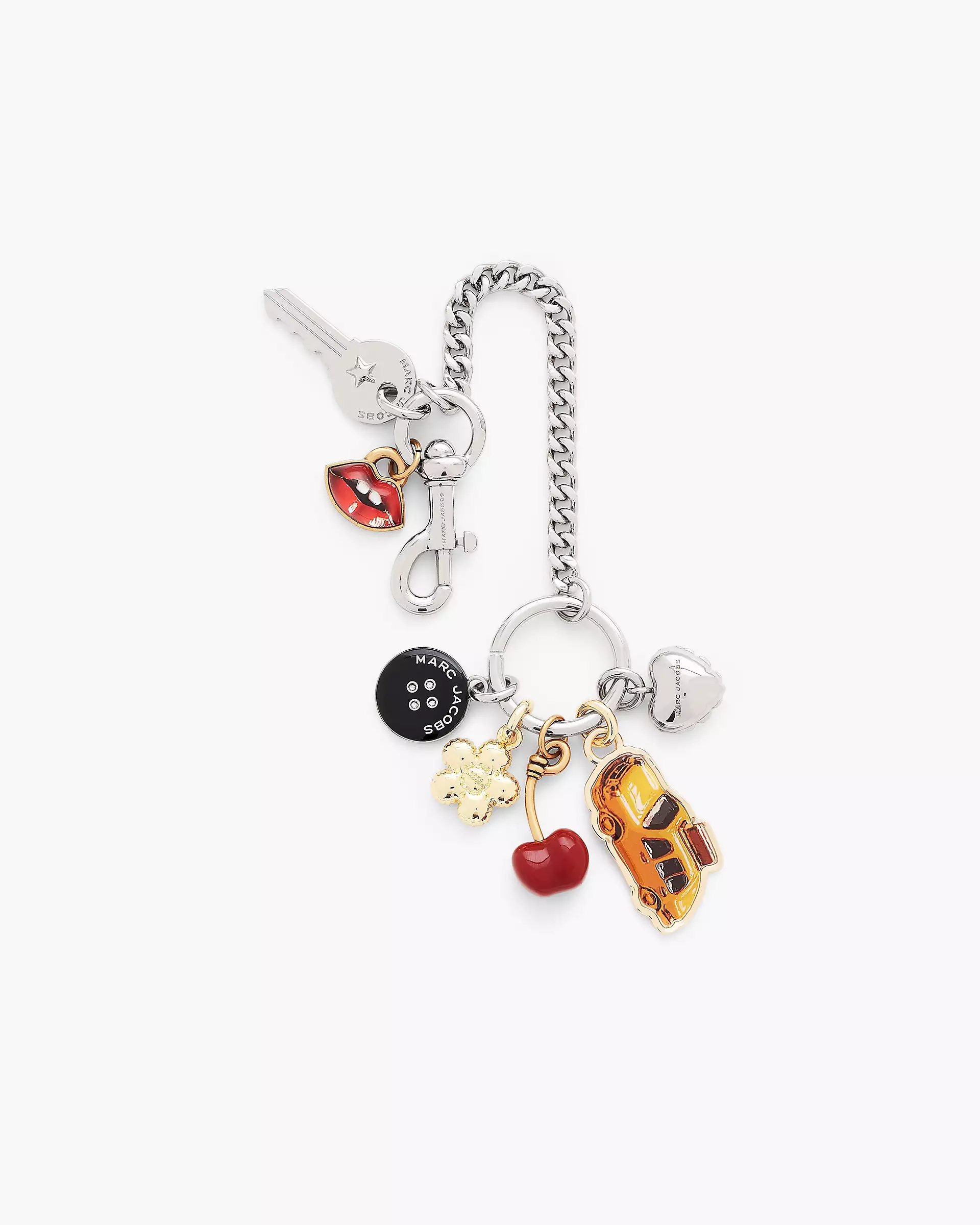 Packed with iconic Marc symbols - lips, cherries, NYC taxis, balloon hearts and more - this charm adds bold, playful energy wherever you clip it. Attach it to your keys, bag or belt loop (and instantly turn heads). Shop Mathtrc Jacthtobs The Trinket Bag Charm